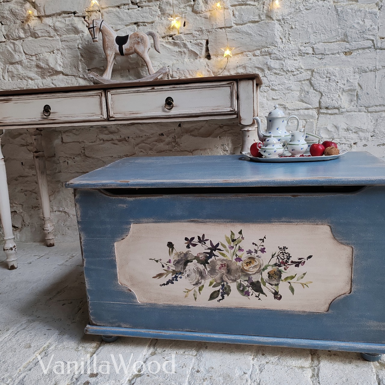 Spodní část odstín MODROŠEDÁ s probrušovanou patinou do bíla.